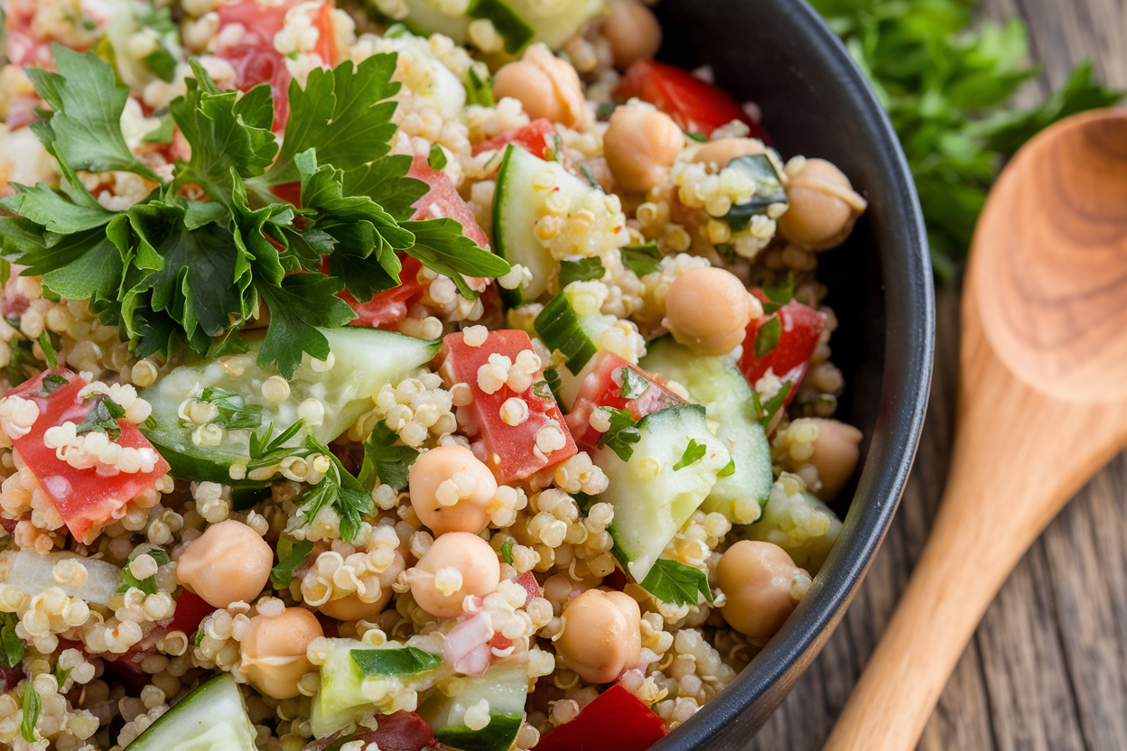 This salad is one of those rare “healthy meets addictive” combos that doesn’t ask you to pretend it’s exciting—it actually is. The chickpeas and quinoa keep you satisfied, the parsley and lemon sharpen every bite, and the olive oil ties it together like a pro. If you want to upgrade it, roast the chickpeas and add mint.