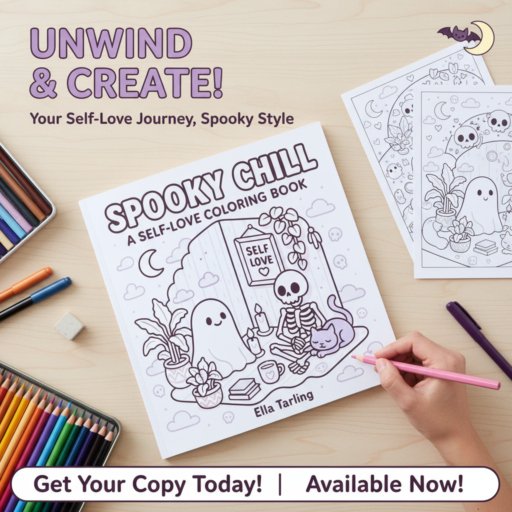 Introducing Spooky Chill: A Self-Love Coloring Book for Adults – your perfect guide to mindfulness, relaxation, and self-love, all wrapped up in a delightfully macabre package.