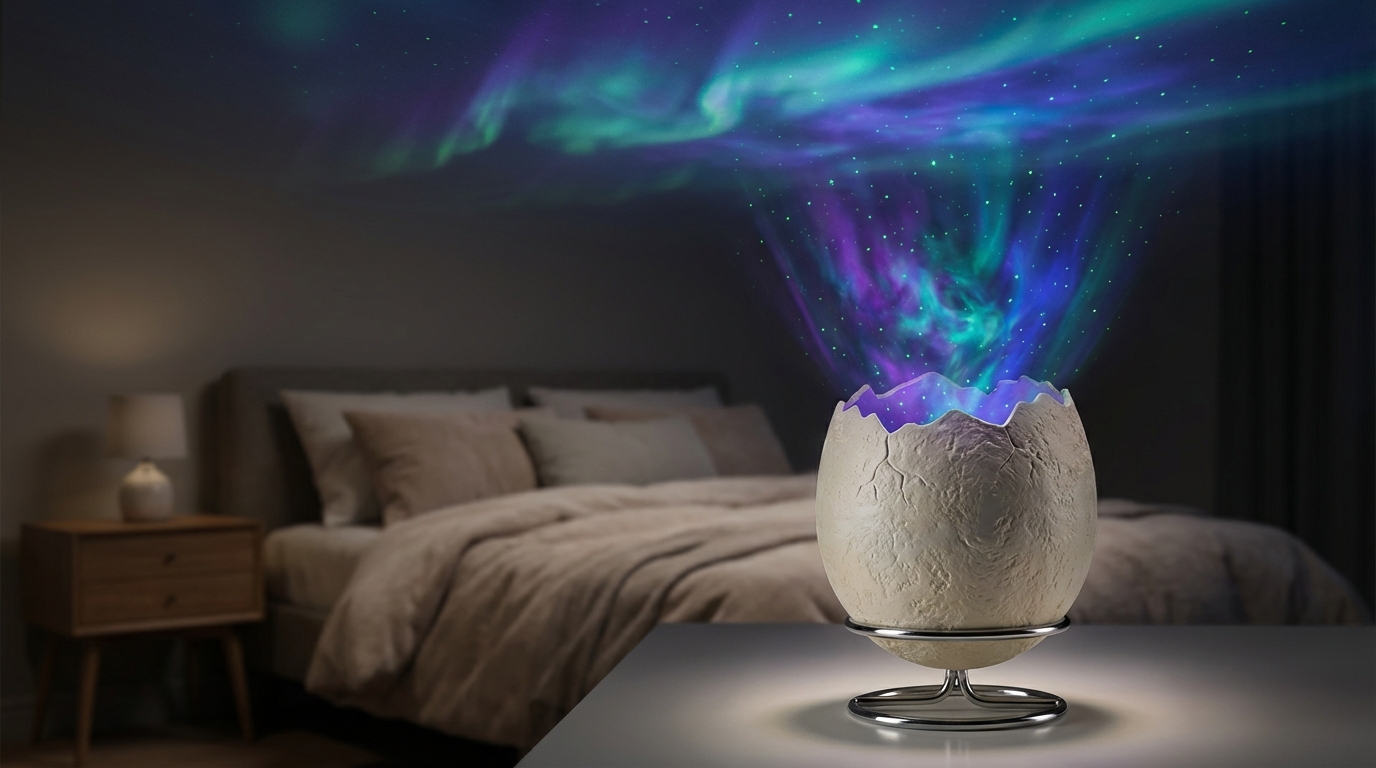 The device features a distinctive “cracked egg” shell design. When inactive, it’s a cool decor piece. But once you power it on, the “crack” erupts with a stunning nebula and star display that covers the entire ceiling. Here is why it’s flying off the shelves: